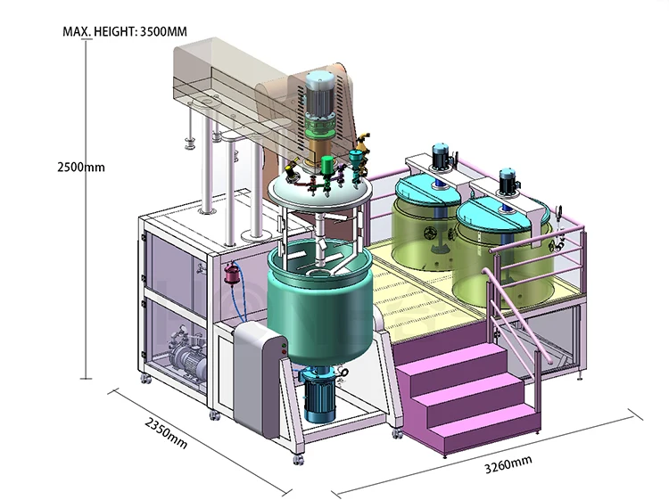 Cosmetic Cream Vacuum Mixer Making Homogenizer Emulsifier Machinery Vacuum homogeneous emulsifying machine (top homogenizer) is an ideal option to produce highgrade skin care products, pharmacy ointment, and many other kinds of creams which need to be very soft and smooth. It has the functions of heating, mixing, scraping, rotating at different speeds and vacuum supply.