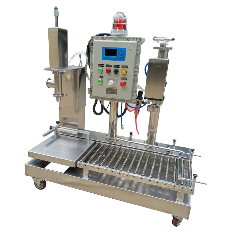 Filling machine the whole body is SS304 materials. Total explsoion proof machine. It is drived by electricity(single phase) and air compressor together. Generally it need 6-8bar pressure.