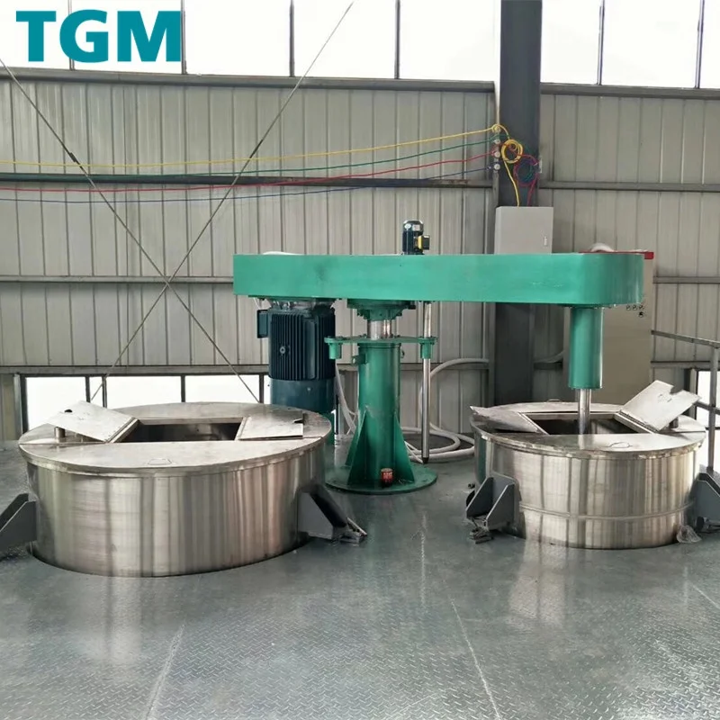 TGM high speed disperser can mix, dissolve and disperse two or more kinds of liquid and powder material. The disperser are used for dispersing and mixing liquid+solid materials. It couyld make paints, coatings, inks, pigments, dyes, thinner, hardener, emulsions, varnish, glues and other low to middle viscosity products.