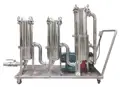 DL series bag filter is widely used at the chemical,paint, coating, printing ink and food industries. This model machine includes the single filter and the doubles filter, forming completed set with the conveying pump unit assembled on the movable trolley respectively. The filter bag protection screen of filter is made of two sorts, carbon and stainless steel, optional depending on different filtered users.
