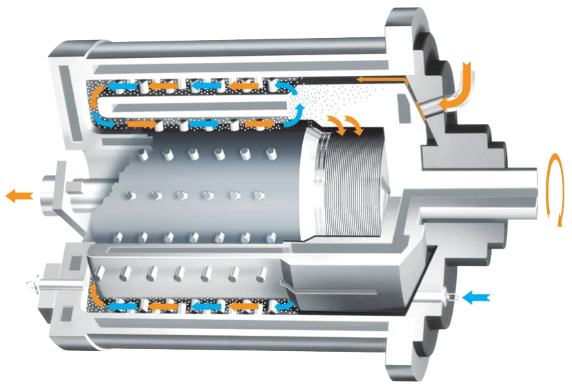 Unique large area tubular reseau centrifugal separator, precise separation & smooth discharging, solve the problems of slow discharging speed and blocking of grinding medium. It can use ultrafine grinding medium, at the smallest 0.05mm discharging sieve can be applied.