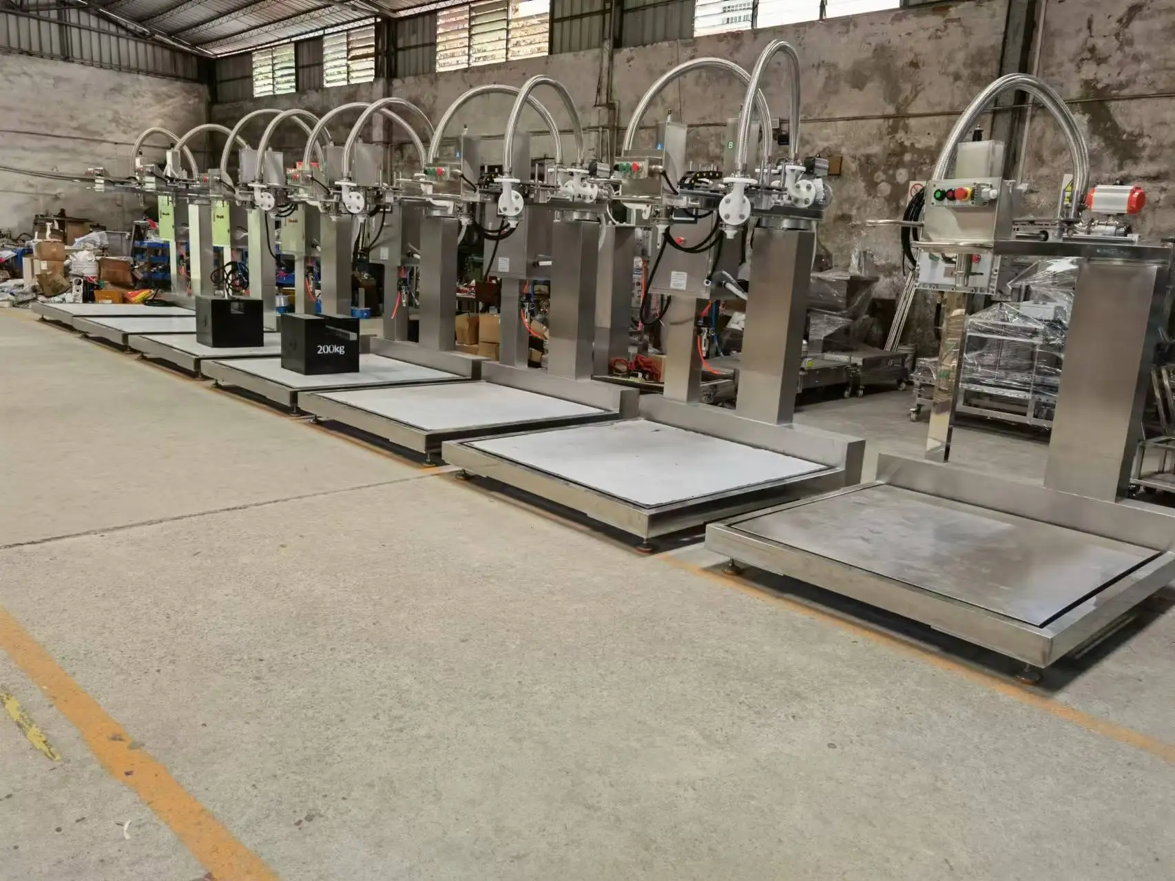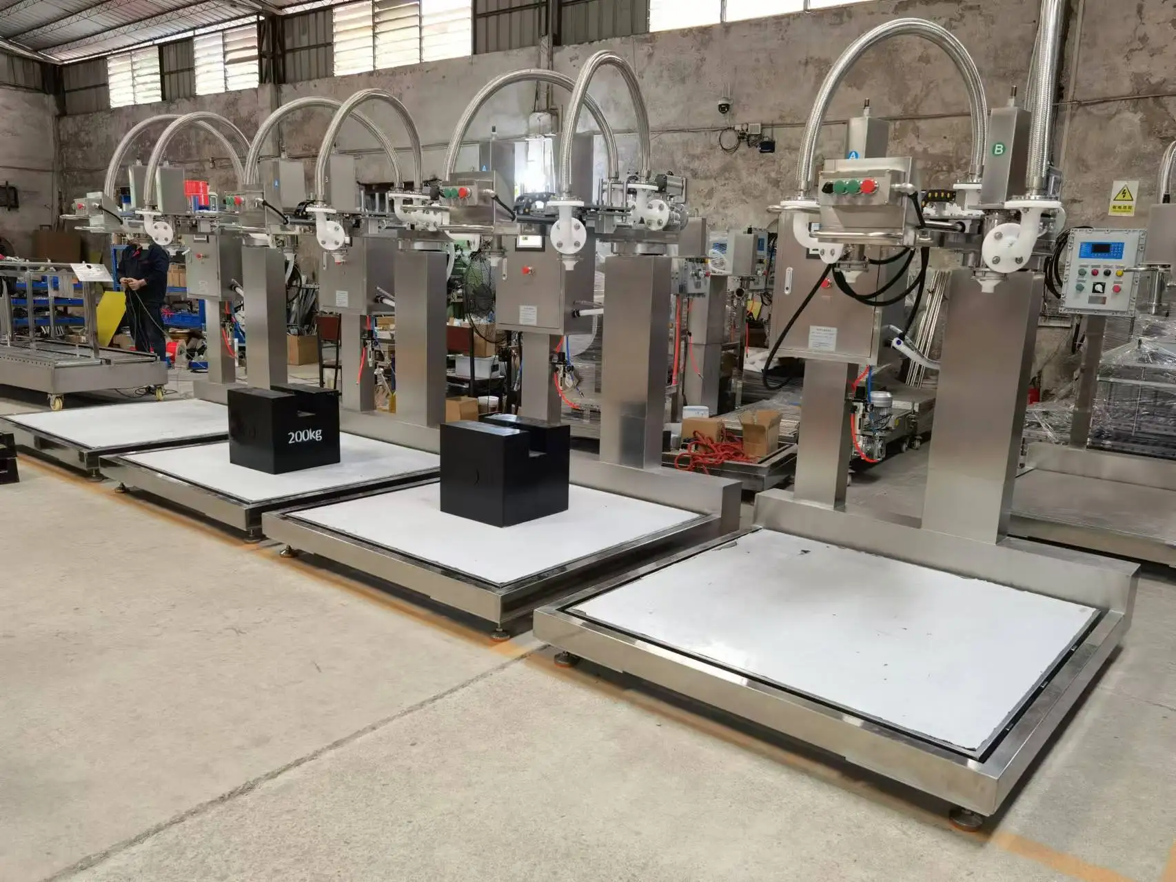 The Large and small bucket double gland machine; Specially designed for the need of frequent change of packaging specifications with double pressed lid function. Adopting the latest European weighing technology, Siemens programmable microcomputer controller, automatic discharge accuracy correction, triple protection for emergency stop/power failure/movement of cans. Set various packaging specifications, store more than thirty kinds of packaging specification data, over-running automatic alarm, automatic lid pressing system, and equipped with explosion-proof device. This equipment is applied to paint, ink, resin, emulsion, universal adhesive and other products with viscosity less than 5000CPS.