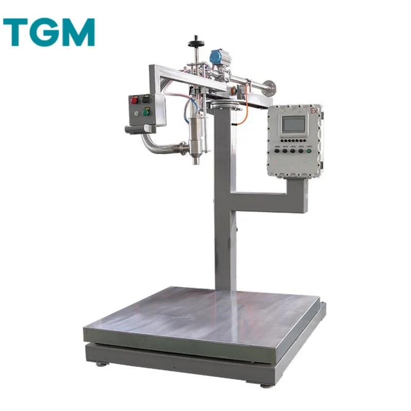 Specially designed for the need of frequent change of packaging specifications, with double gland function; Adopting the latest European weighing technology; Adoption of Siemens programmable microcomputer controller; Automatic discharge speed adjustment; ●Automatic discharge accuracy correction; ●Triple protection for emergency stop/power failure/movement of cans; Setting of various packaging specifications; ●Storage of more than thirty kinds of packaging specification data; ●Automatic alarm of over-variance; ●Automatic capping system; Equipped with explosion-proof device;