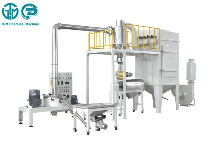 step four: ACM is designed with high speed grinding air classifying, cyclone, sifting and fine powder collecting. A perfect particle size distribution of powder coating could be obtained by adjusting the running parameters of the grinding system.