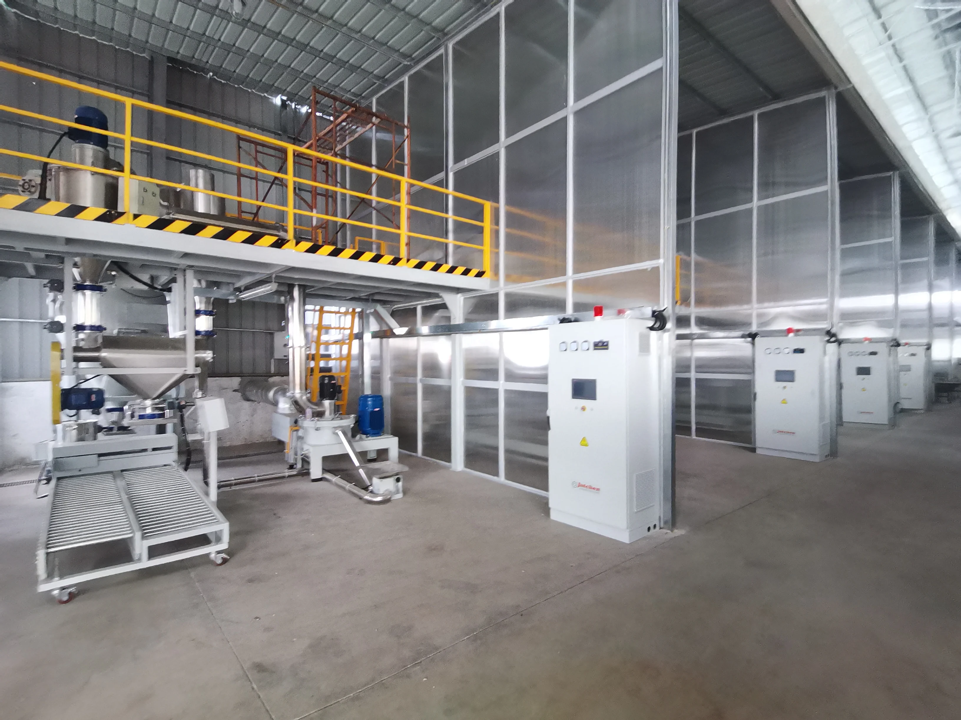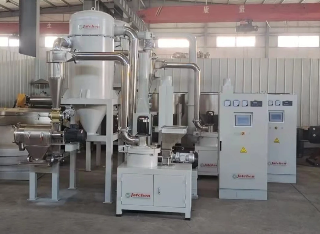 step four: ACM is designed with high speed grinding air classifying, cyclone, sifting and fine powder collecting. A perfect particle size distribution of powder coating could be obtained by adjusting the running parameters of the grinding system.