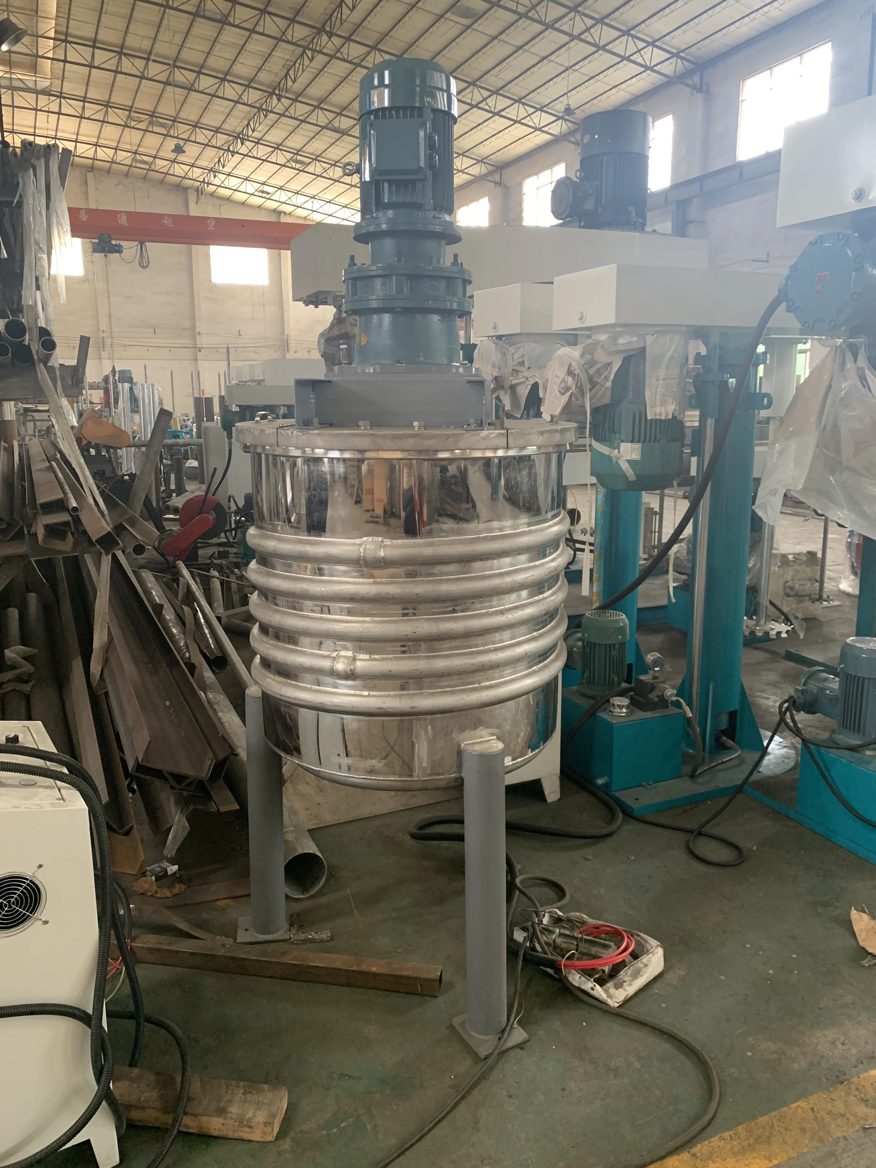 Chemical Processing Machine: stainless steel chemical reaction vessel(reactor) is heated by the external coil or jacket to supply heat transfer conduction oil / steam / water, it is an ideal equipment of low power and high heating temperature and large volume.