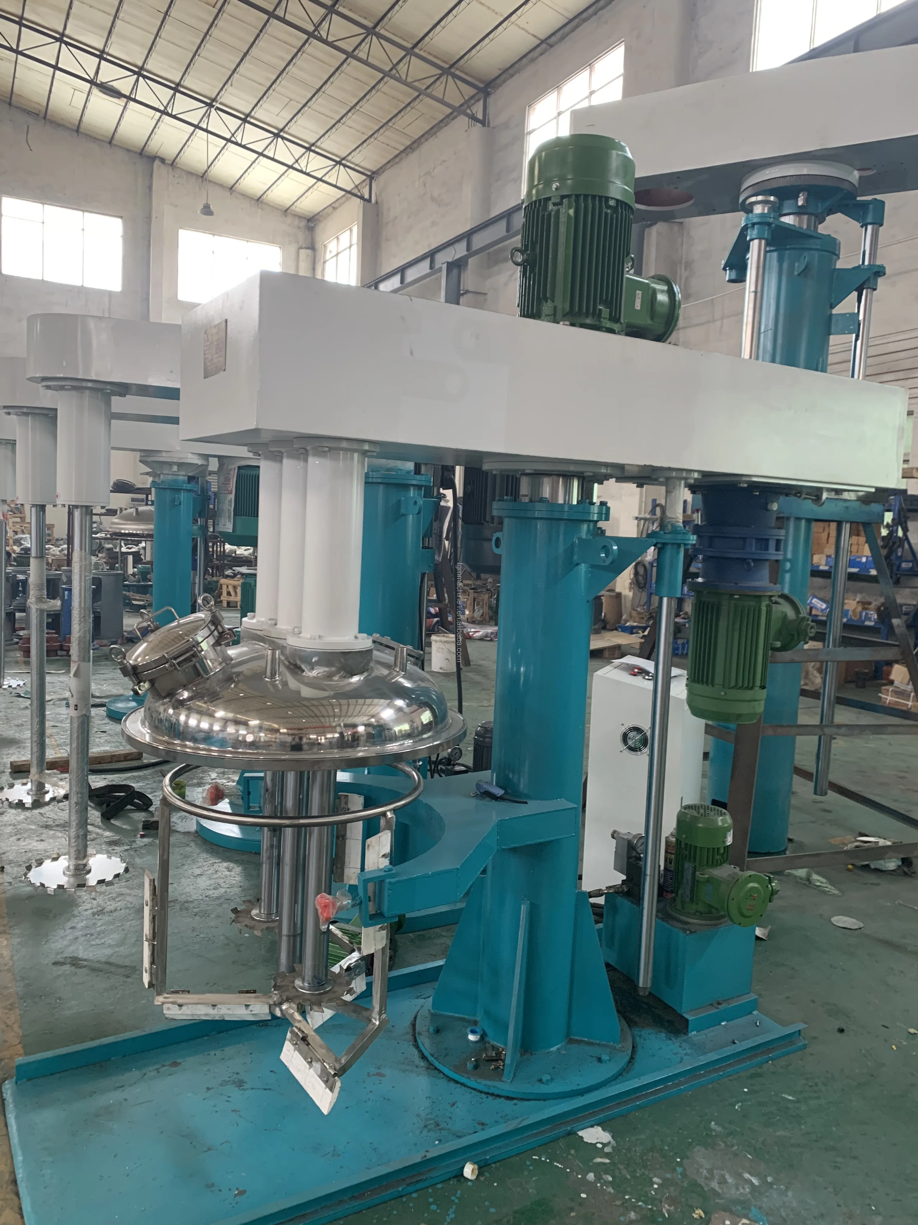 The butterfly double-shaft mixer is suitable for mixing high-viscosity paint, ink, adhesive, putty, putty, real stone paint and other chemical products. Its structure is as follows: the low-speed butterfly agitator makes the materials turn and mix in the cylinder, and the high-speed tooth-shaped dispersing disc generates strong shear with the mixed materials, so that the aggregates are quickly mixed, dispersed and dissolved.