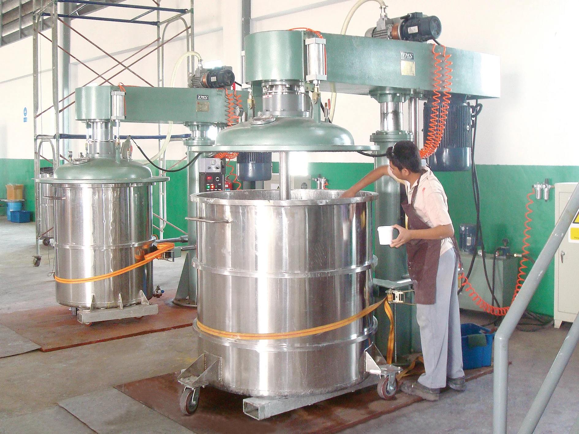 Our machines help to make paints,coatings inks pigments, dyes, glues, adhesives,spin finish,wood glue,glue for paper conversion,viscous pastes, concrete Admixtures, PCVC solvent cement,resins ,sealants,silicone sealant, putty, lithiumbattery , electronic slurry&paste,pulps,liquid rubber,pesticide,liquid fertilizer, disinfectant,liquid detergent, lotions, shampoo, body wash liquid soap, hand sanitizer,nail polish,gel,creams,and other chemical and cosmetics products.