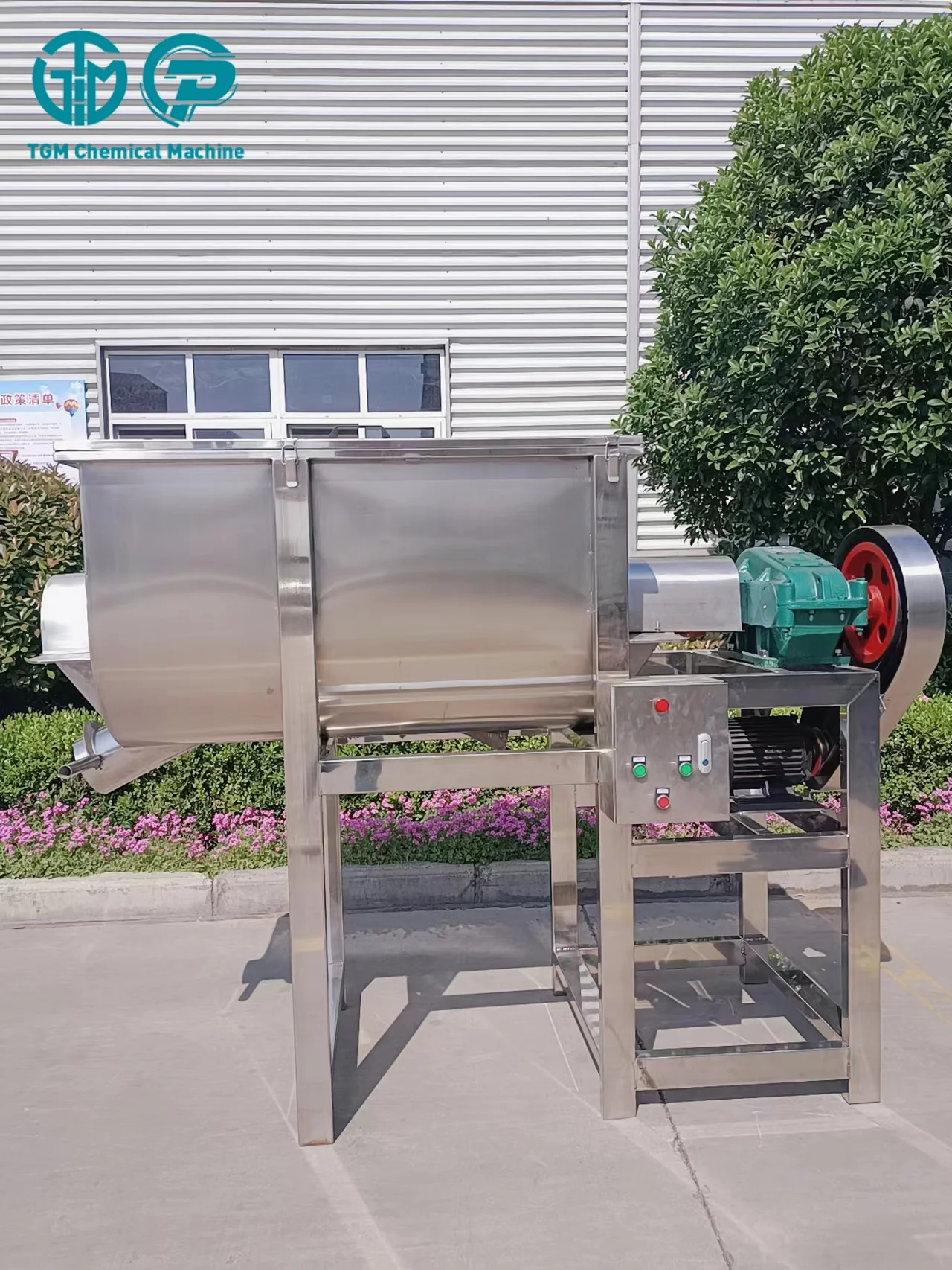 1. horizontal mixer adopt u-shaped cylinder, inner and outer ribbon on the second floor has a unique structure, smoothoperation, reliable quality, low noise, long service life, easy installation and maintenance, multifunctional mixingequipment is widely used. 2. agitator motor adopts full copper motor, speed reducer adopts gear speed reducer, more bold big shaft, wear-resistingdurable, major axis and the barrel seal USES the three layers of seal, bearing and barrel separation, USES the wideningthickening channel steel, security firm. 3. $crew or bucket can be used for feeding, and the material can be fed by impeller or screw out, filing of valve port and automatic measurement of computer.